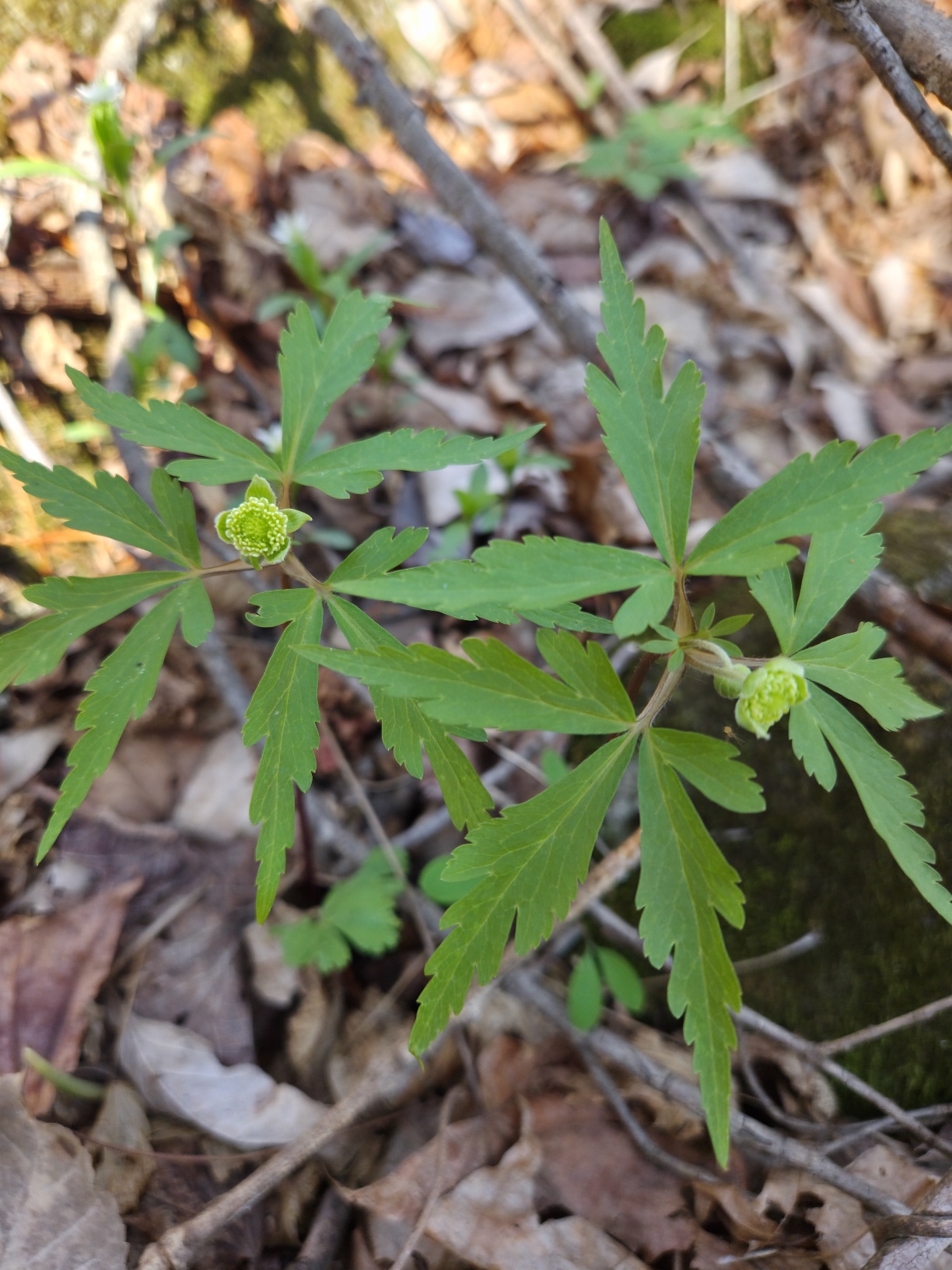 ♤ 회리바람꽃 (미나리아재비과) : 회오리 모양의 바람꽃 종류라는 뜻의 이름으로 추정한다. 꽃받침이 완전히 뒤로 젖혀지는 점이 특징이다. 경북 이북(경기, 강원, 충북, 경북) 산지에 그늘진 곳에서 자라는 여러해살이풀이다.
